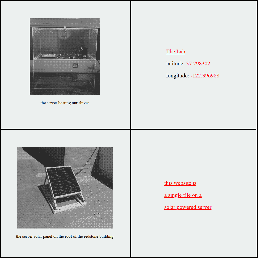 The server is currently stll hosted in the entrance of The Lab’s venue, and accessible online at ourshiver.site.